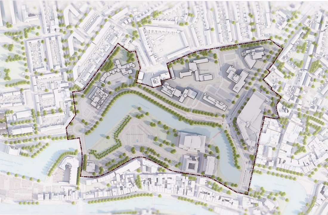 Toekomstige situatie met gesloopt en verbouwd rijkskantoor