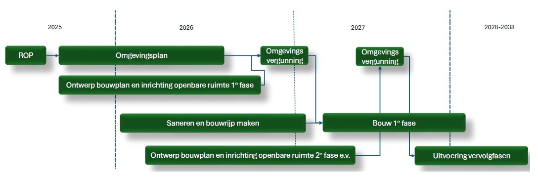 Vervolgens is door de gemeente het Ruimtelijk Ontwikkelingsprogramma (ROP) uitgewerkt. Waarna zal worden gestart met de realisatie van de eerste fase, het Noordereiland. Op het moment dat de Rijkspanden vrijkomen, zullen deze worden verkocht om verdere uitvoering te geven aan het ROP.